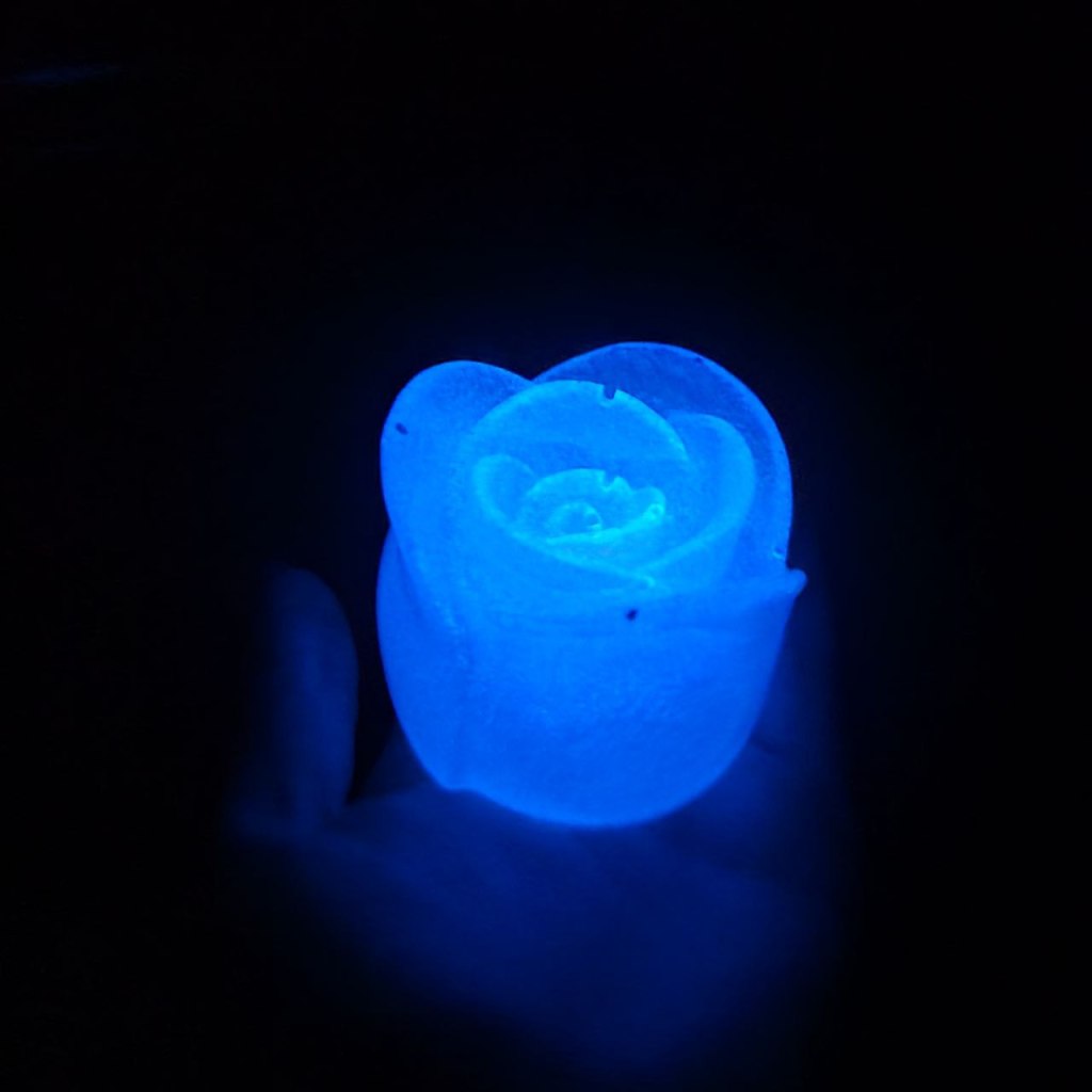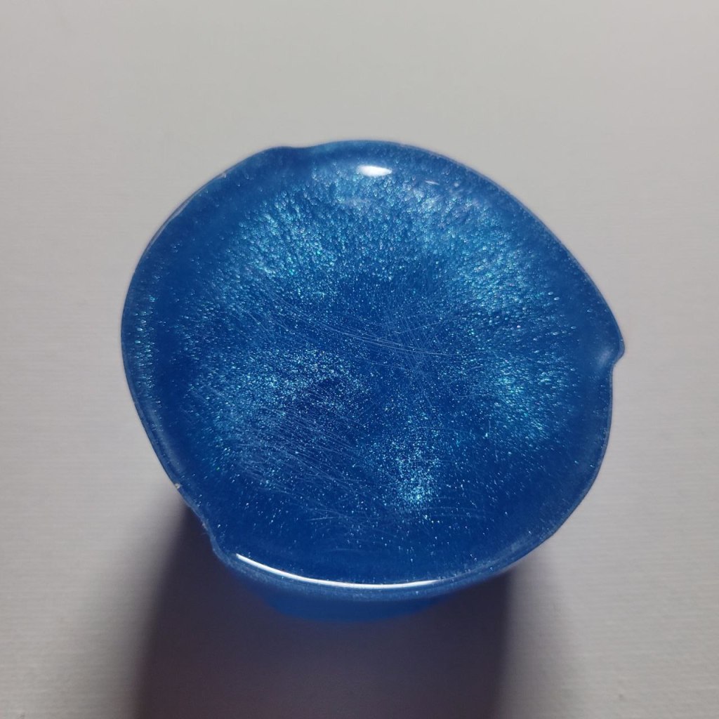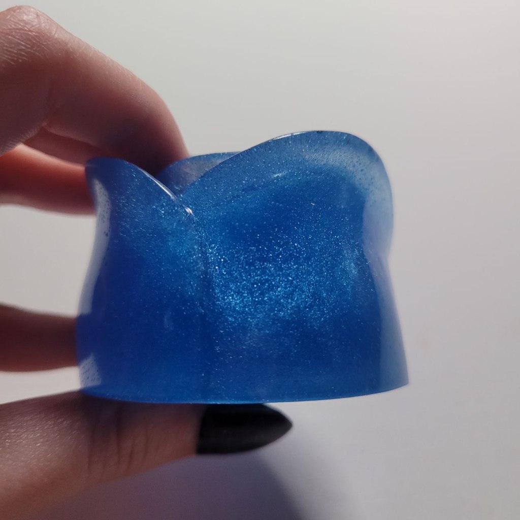 This one has blue pearlescent pigment in it and also blue glow-in-the-dark powder inside of it! I really love including the glow powder, because it brings a whole new level to this if someone wanted to use it as a decoration! I really love how sparkly this is and how it looks in the dark as well!