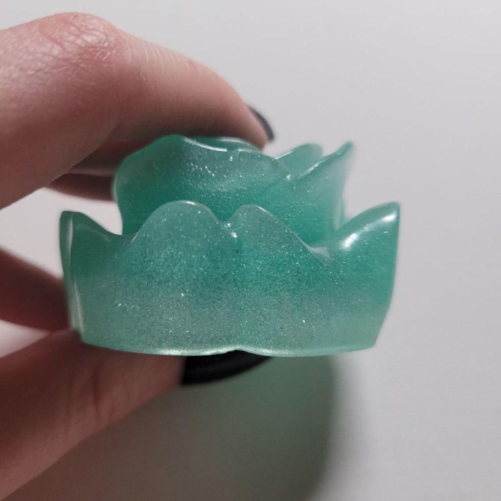 This one does have some black specs in it, which is not ideal, but I still really like it. I am getting much better at reducing the amount of bubbles in my resin, and the amount of outside debris. After investing in a pressure pot sometime in the near future, bubbles will no longer be a problem.