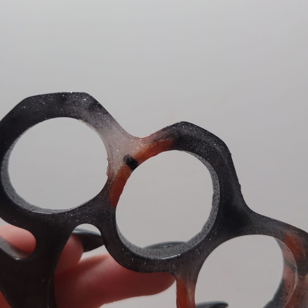 Hello! This is yet another resin post, but this is a different mold than anything else I have posted so far! I recently bought a bunch of new molds, and a brass knuckle mold was one of them. This post is going to be about the second brass knuckles I made with this mold!