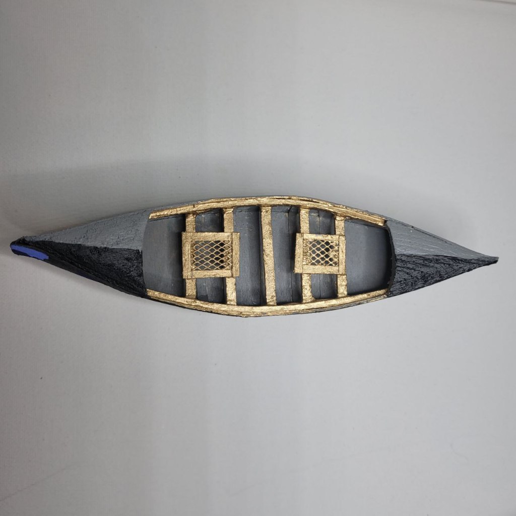 On the inside, since he saw what I was doing, he decided to paint it gold. We have some liquid gold paint, and it ended up looking really good on this material. I really like how the inside of his boat turned out as well because it goes with both colors of the sides and it makes the boat seem more luxurious.