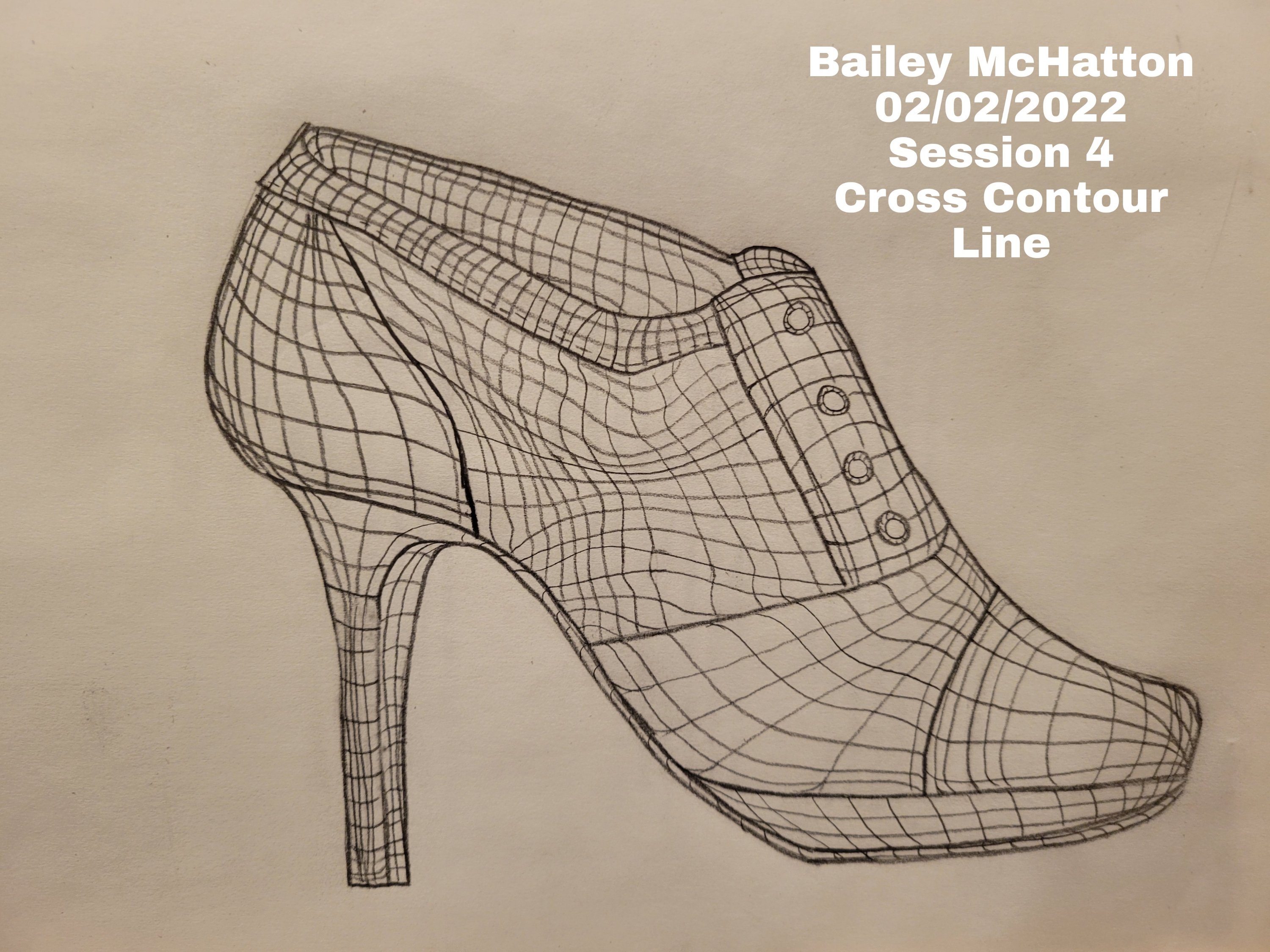 This session in my art class was about cross contour lines. Before this class, I didn’t really know anything about cross contour lines, but I had seen them before. If you don’t know, cross contour lines are basically a grid of lines drawn across an object to show the three dimensional properties and the flow of the object. I’m not sure how well I explained that, but I hope the pictures below will help.