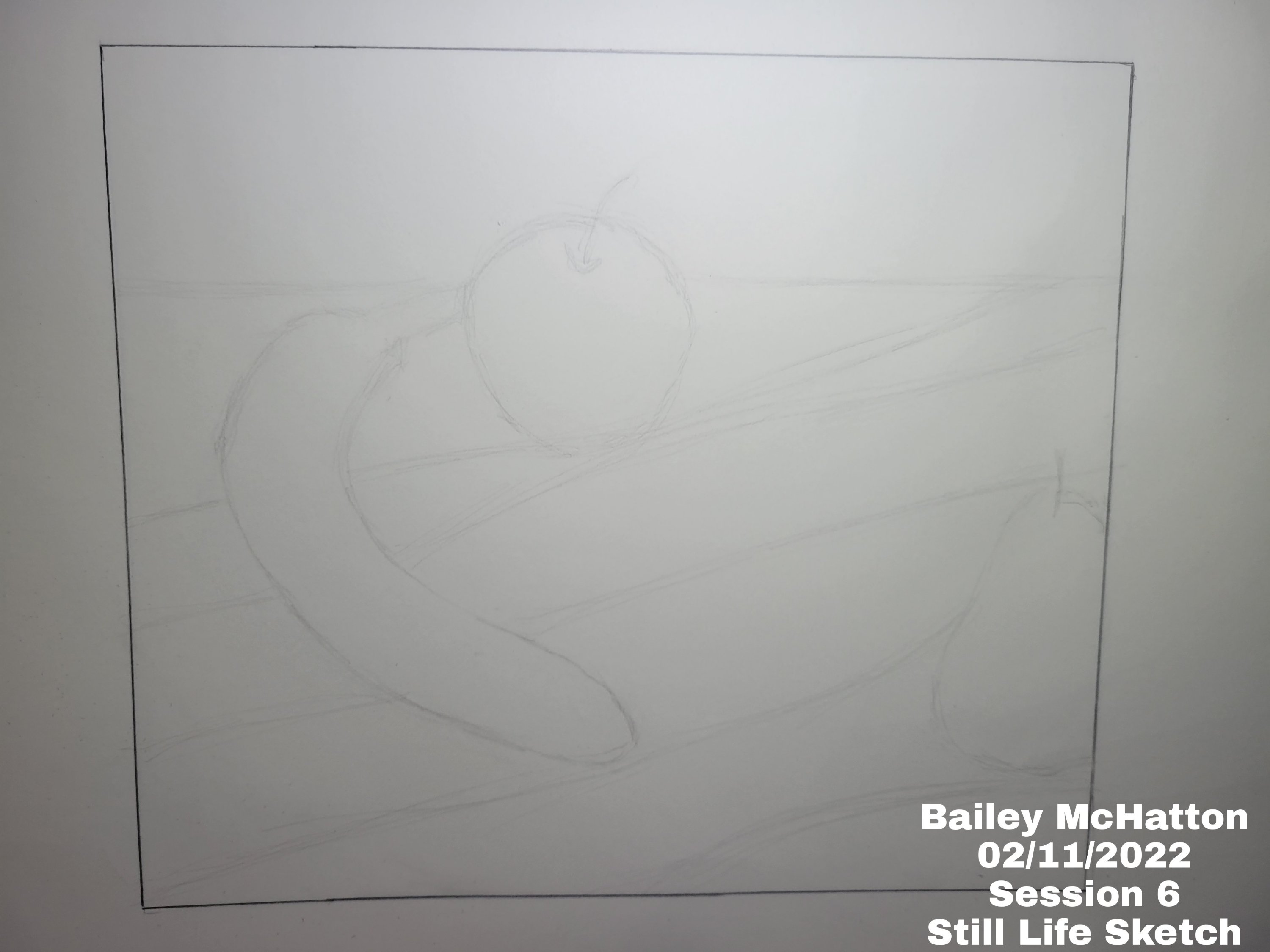 Next, I started my sketch of the still life. I’ve found sketching to be pretty easy throughout this course, so I was happy that this step did not take that long. I think the sketch really does look pretty proportionally accurate.