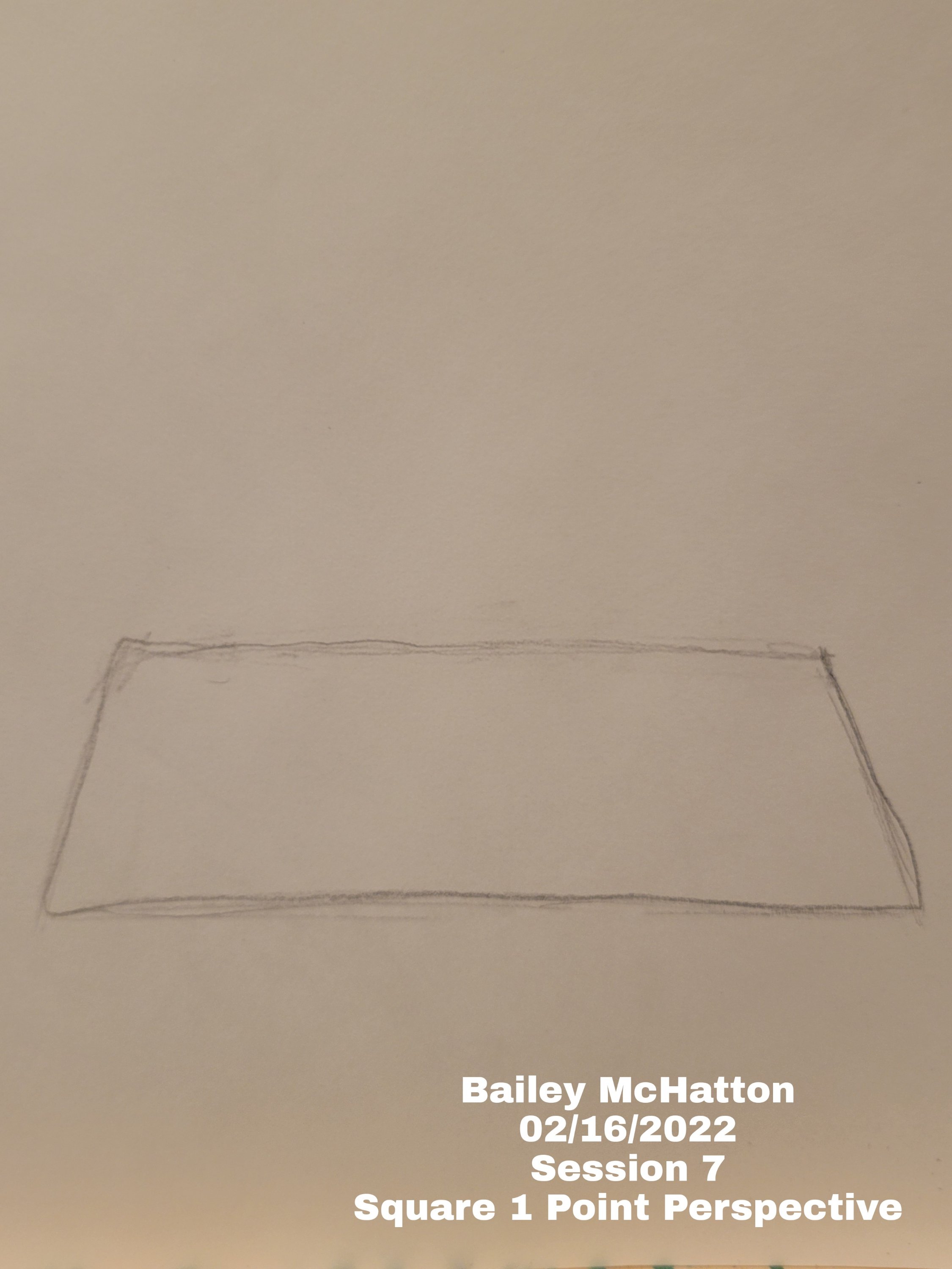 After that, we were supposed to look at the square piece of paper on the table and draw it how it actually looked. This was our first introduction to something called one point perspective. This is when all of the lines in the drawing are either parallel to the bottom, or point to one vanishing point in the distance.