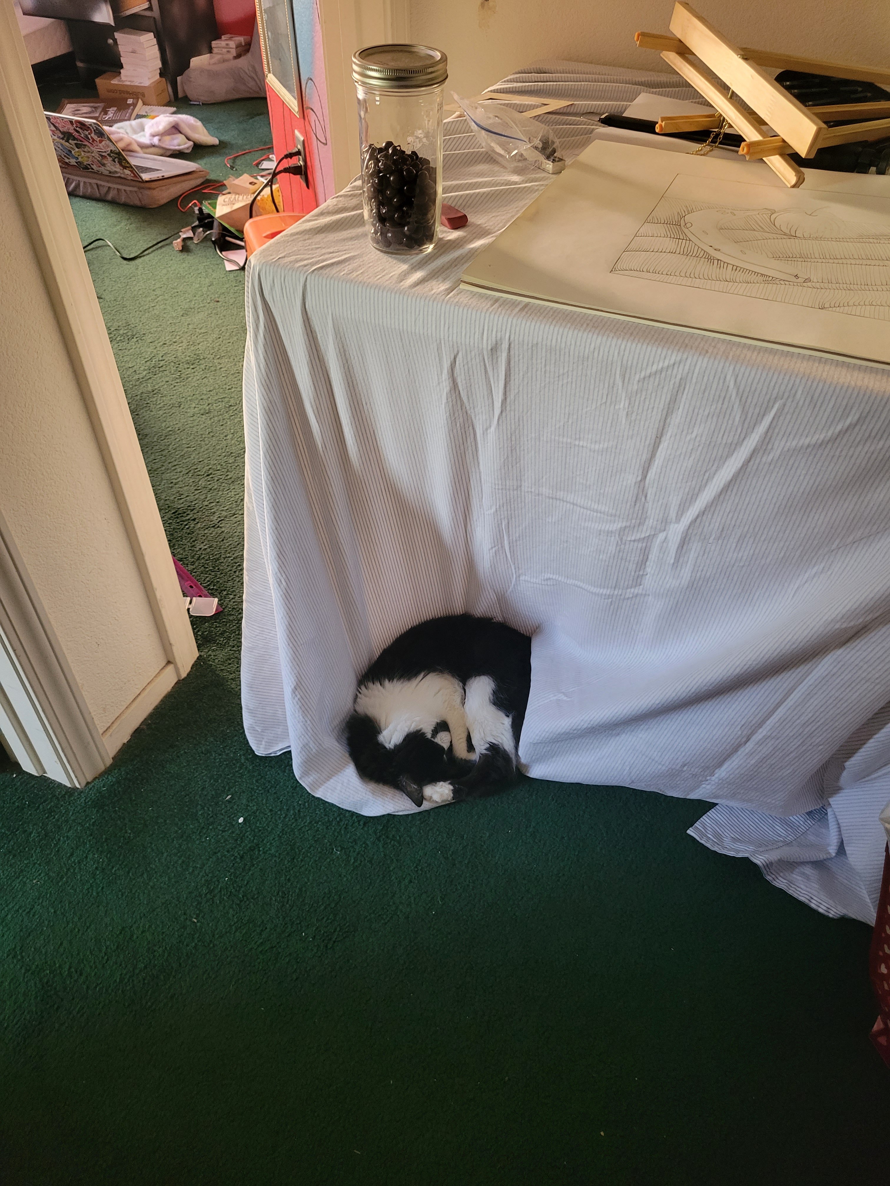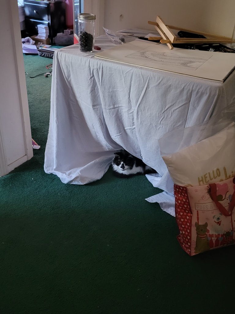 Your “blind” hands turned out really good. I tried that once, and it wasn’t easy. Jack is adorable… it’s funny that he likes to sleep against the sheet like that. Hope he doesn’t pull things off the table! Did you name him after your Uncle Jack?