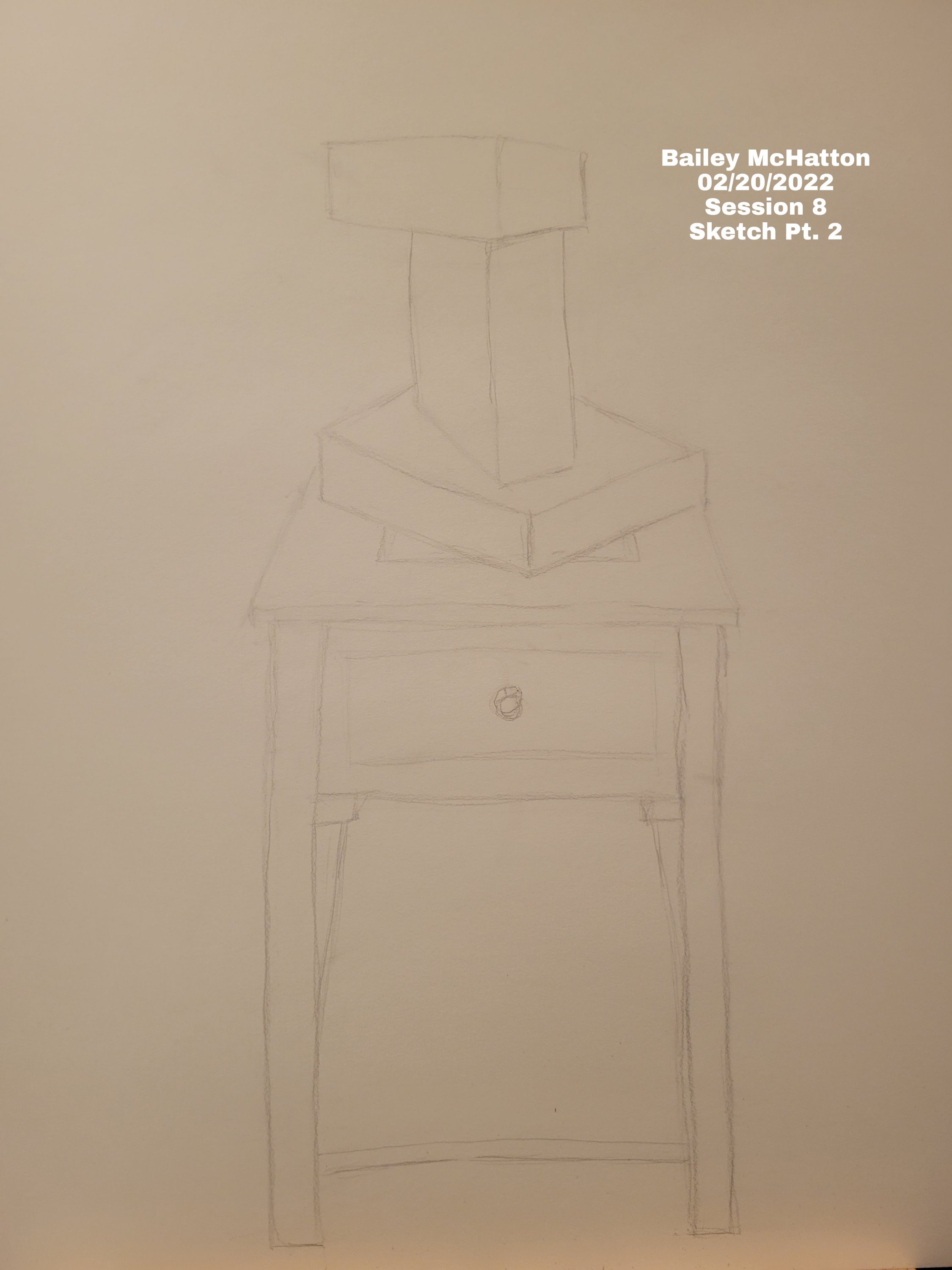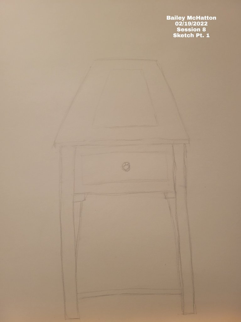 We actually didn’t have to do a finished drawing for this session, and we only had to photograph the stages of our sketch, one with just the table, and one with the boxes and table.