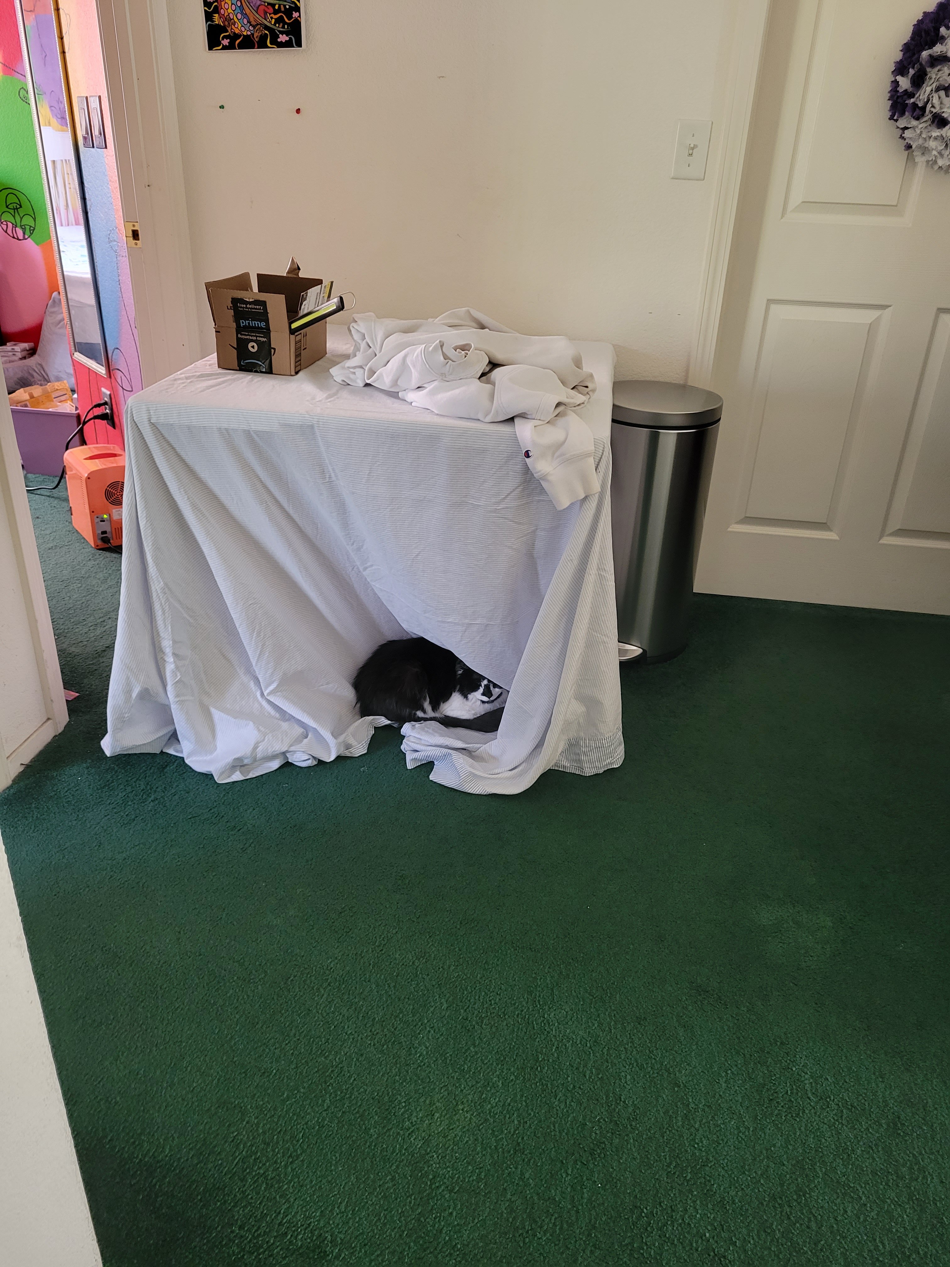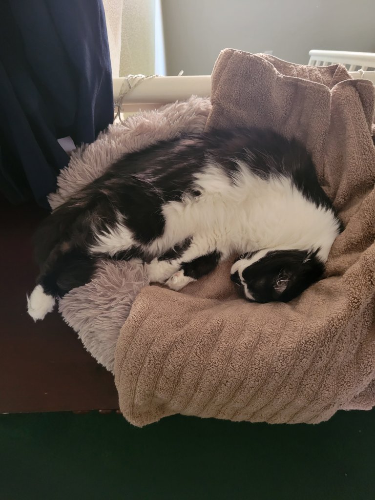 Here is Jack laying all comfy in his little bed on top of a dresser.