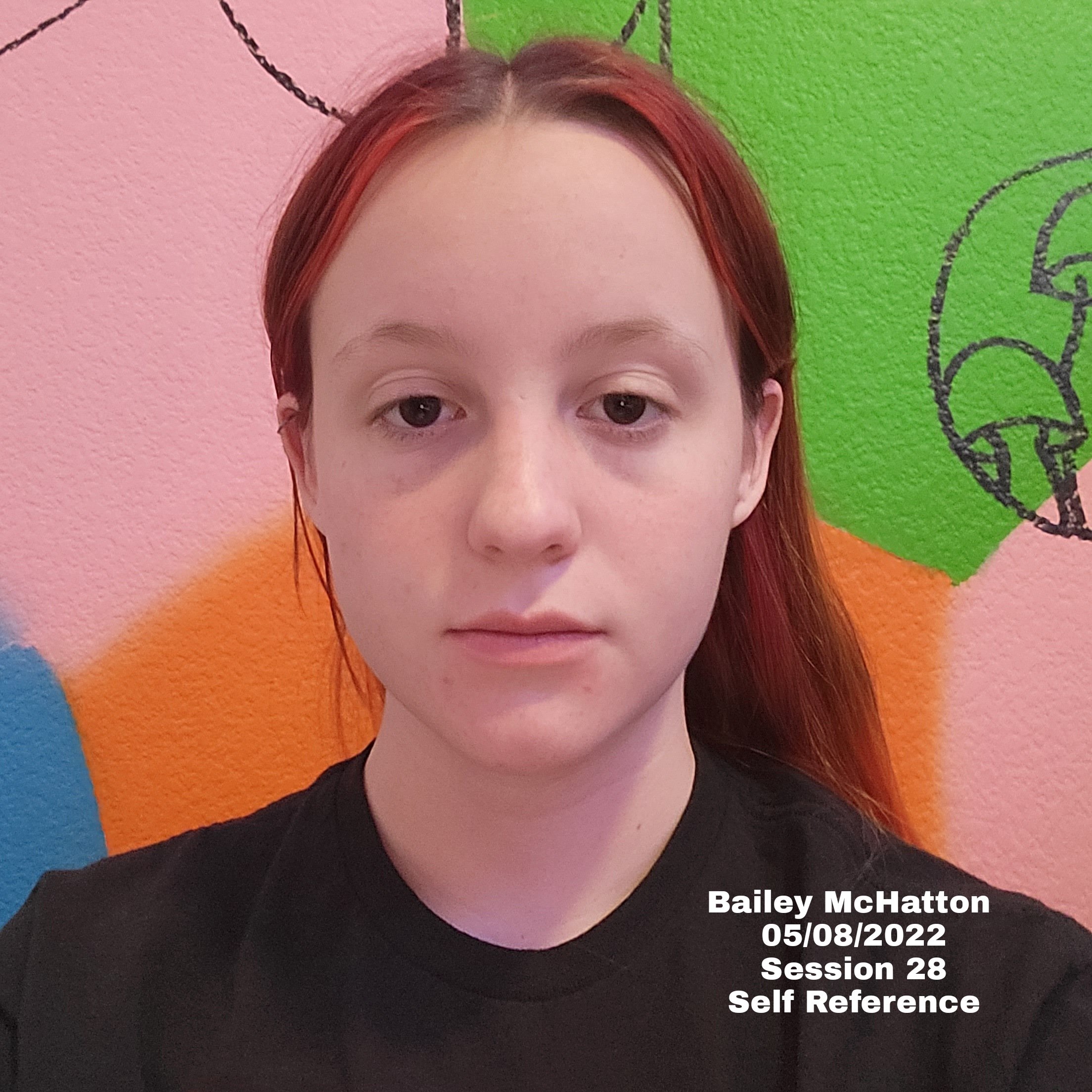 Here is the reference for the front angle. I knew it would be harder to do all of the details if I smiled, so I kept my expression neutral.