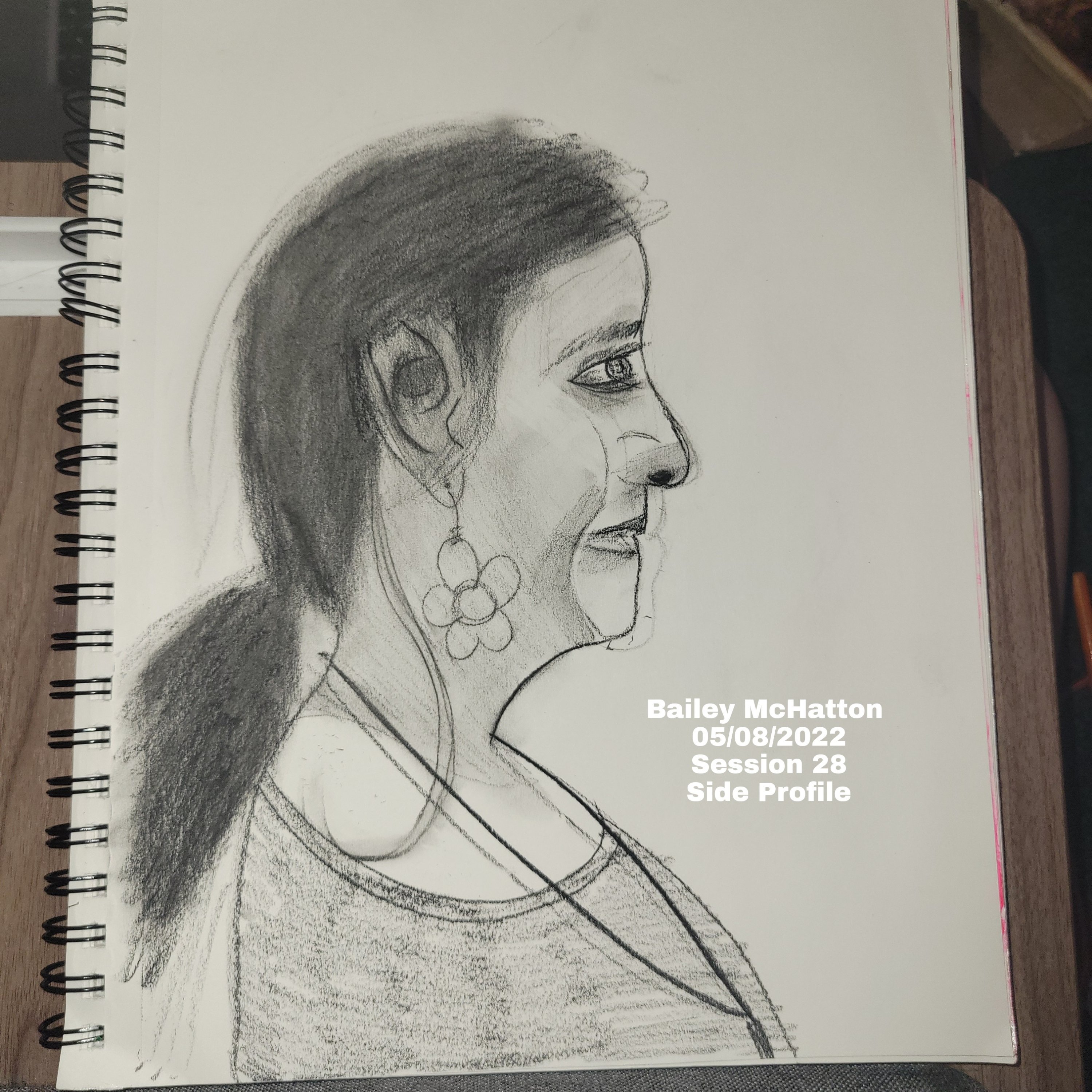 Next, we had to draw a face from a side profile, and I made my mom pose for me since we couldn’t use ourselves. I feel even worse about this one because it was someone else that I was making look terrible and not myself.