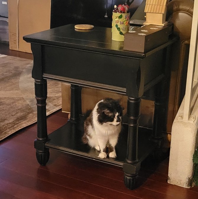 Here he is acting like a decoration on a side table we have. I think this is exceptionally cute.