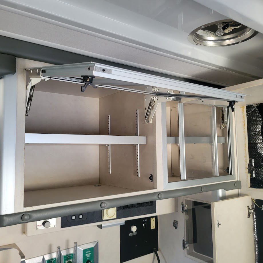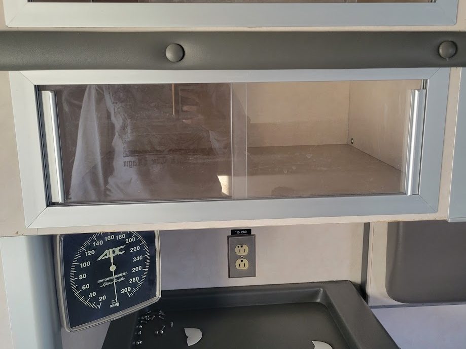 In my previous post, I mentioned how most of the cabinets that are in the ambulance right now are really hard to work with, and keeping them would mean a very irritating future of storing things in them. I took some pictures of those, and here they are: