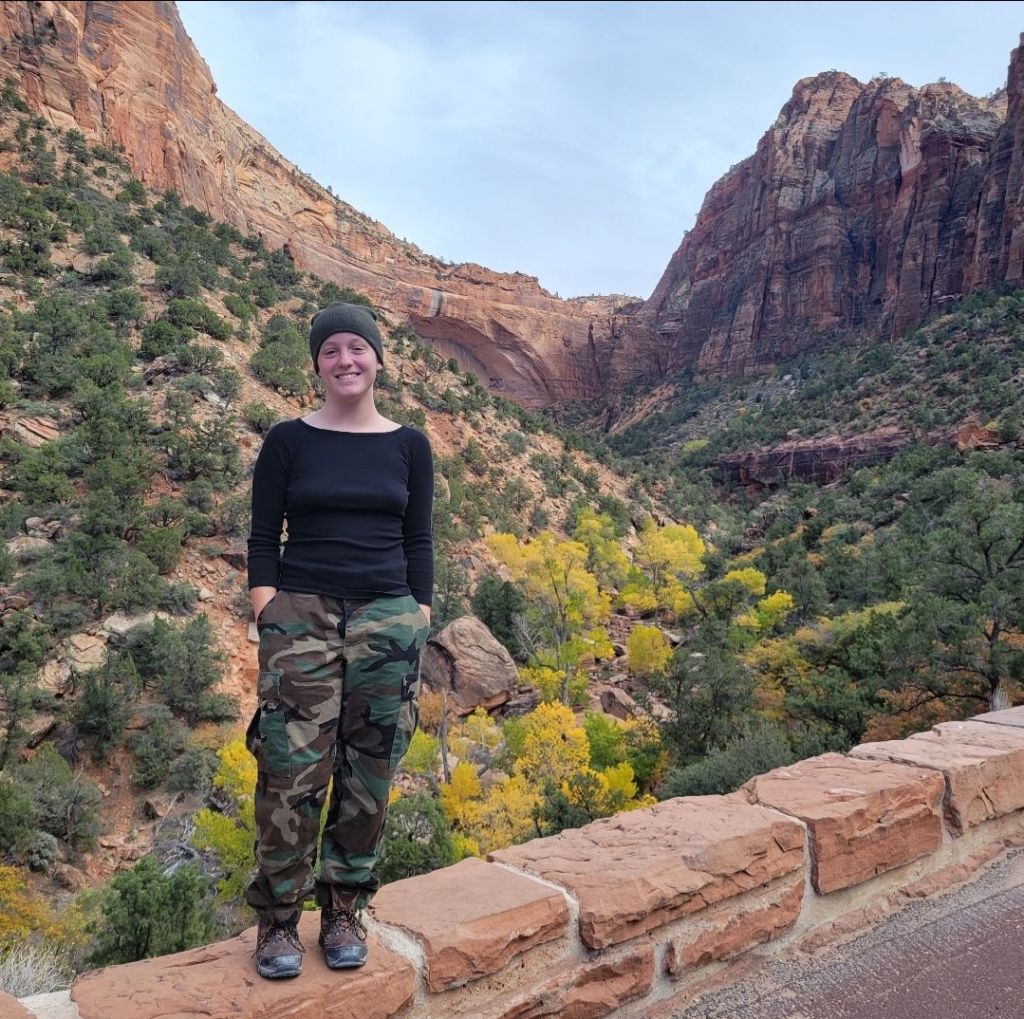 A picture of me at Zion, it was also pretty chilly here.