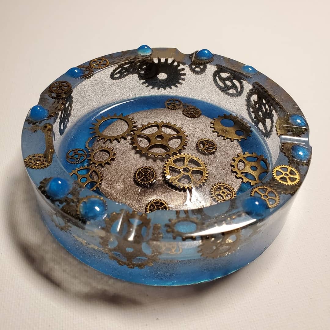 Clear/Blue Gear Ashtray w/ Magnet